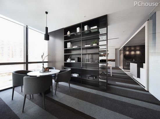 既然在設計本身的層面沒有硬性要求,設計師便在第一種情境中嘗試著玩一種黑白灰關系的像素視覺,而將小一點的空間想象成一個小型的文創行業的辦公地。